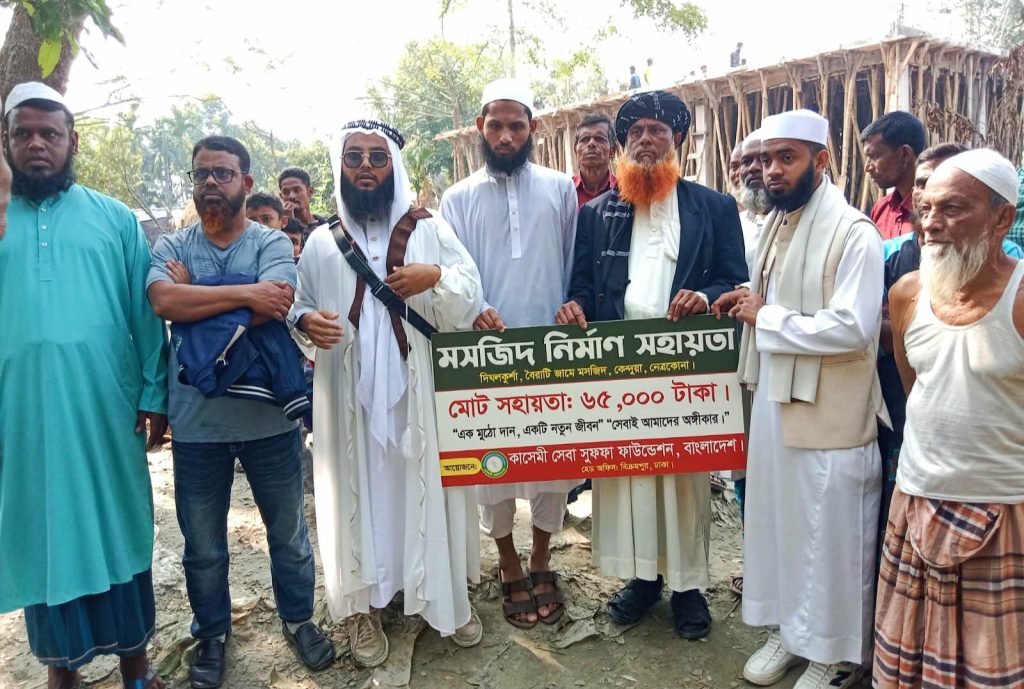 নেত্রকোণার কেন্দুয়ার কান্দিউড়া ইউনিয়নের দিঘলকুর্শার বৈরাটি এলাকায় বৈরাটি জামে মসজিদ নির্মাণে ৬৫ হাজার টাকা আর্থিক সহযোগিতা /অনুদান করেছে কাসেমী সেবা সুফফা ফাউন্ডেশন, বাংলাদেশ নামে একটি দাতব্য প্রতিষ্ঠান।