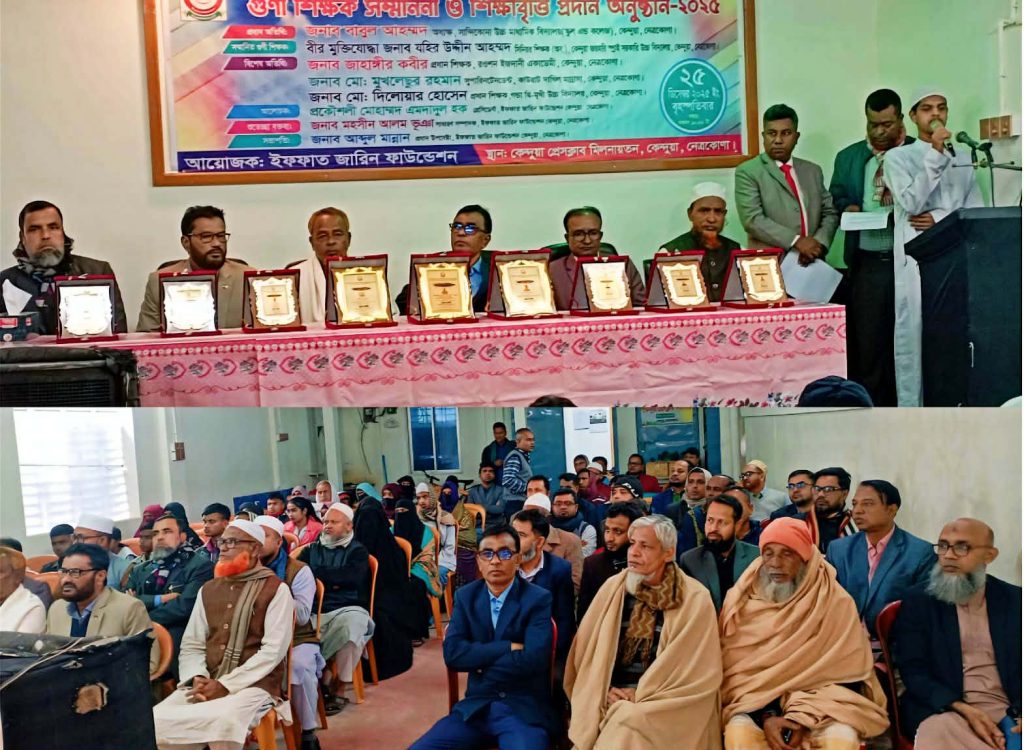 নেত্রকোণার কেন্দুয়ায় গুণী শিক্ষক সম্মাননা ও সুবিধাবঞ্চিত শিক্ষার্থীদের শিক্ষাবৃত্তি প্রদান অনুষ্ঠান-২০২৫ অনুষ্ঠিত হয়েছে।