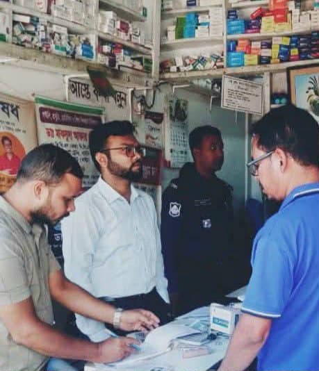 অভিযানকালে ড্রাগ লাইসেন্স ছাড়া ফার্মেসি পরিচালনা, মেয়াদোত্তীর্ণ ও ফিজিশিয়ান স্যাম্পলজাত ওষুধ বিক্রি এবং রেজিস্টার্ড চিকিৎসকের প্রেসক্রিপশন ছাড়া অ্যান্টিবায়োটিক সরবরাহসহ বিভিন্ন অপরাধে চারটি প্রতিষ্ঠানকে ‘ঔষধ ও কসমেটিকস আইন, ২০২৩’ অনুযায়ী জরিমানা করা হয়।