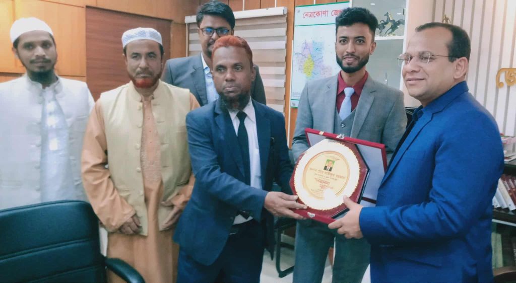 নেত্রকোণার নবাগত জেলা প্রশাসক ও জেলা ম্যাজিস্ট্রেট মো.সাইফুর রহমানকে ফুলের শুভেচ্ছা ও সম্মাননা স্মারক প্রদান করেছে আল-মদিনা ফাউন্ডেশন।