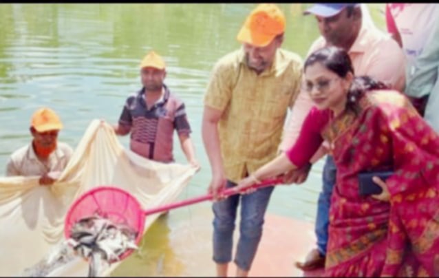 মৎস্য সপ্তাহ উপলক্ষ্যে সকালে জেলা প্রশাসকের বাস ভবনের সামনের পুকুরে প্রধান অতিথি হিসেবে মাছের পোনা অবমুক্ত করেন জেলা প্রশাসক বনানী বিশ্বাস।