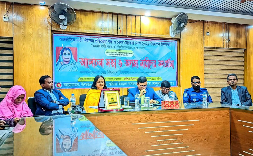 “নারী ও কন্যার প্রতি সহিংসতা বন্ধে ঐক্যবদ্ধ হই,ডিজিটাল নিরাপত্তা নিশ্চিত করি।”এই প্রতিপাদ্যকে সামনে রেখে নেত্রকোণার কেন্দুয়ায় আন্তর্জাতিক নারী নির্যাতন প্রতিরোধ পক্ষ ও বেগম রোকেয়া দিবস ২০২৫ উপলক্ষে “অদম্য নারী পুরস্কার” প্রদান ও আলোচনা সভা অনুষ্ঠিত হয়েছে।