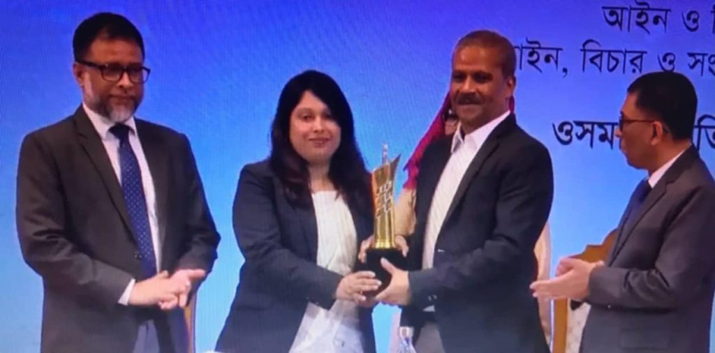 জাতীয় আইনগত সহায়তা দিবস ২০২৫ উদযাপন উপলক্ষে সোমবার (২৮ এপ্রিল) উদ্বোধনী অনুষ্ঠানে সেরা প্যানেল আইনজীবী -২০২৪ সম্মাননা পুরষ্কার পেলেন সিলেট জেলা লিগ্যাল এইড অফিসের প্যানেল আইনজীবী এডভোকেট পল্লবী রায়। রাজধানী ঢাকার ওসমানী স্মৃতি মিলনায়তনে অনুষ্ঠিত উদ্বোধনী অনুষ্ঠানের প্রধান অতিথি আইন, বিচার ও সংসদ বিষয়ক মন্ত্রণালয়ের মাননীয় উপদেষ্টা ডঃআসিফ নজরুলের কাছ থেকে তিনি সেরা প্যানেল আইনজীবীর সম্মাননা পদক গ্রহণ করেন। সিলেট জেলা আইনজীবী সমিতির সম্মানিত সদস্য অ্যাডভোকেট পল্লবী রায় সিলেট জেলার সেরা লিগ্যাল এইড প্যানেল আইনজীবী হিসেবেও নির্বাচিত হয়েছেন।